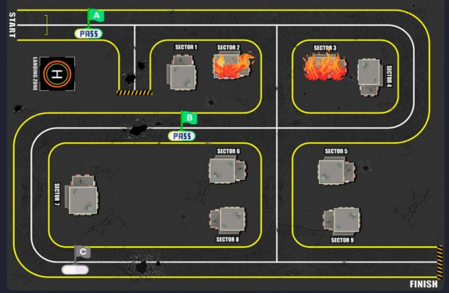 ๊ฐ ๊ตฌ๊ฐ(Alpha, Bravo, Charlie)์ ์ ํต๊ณผํ ๋๋ง๋ค 5์ ์ฉ ํ๋ํ ์ ์์ผ๋ฉฐ, 3๊ตฌ๊ฐ ๋ชจ๋ ํต๊ณผ ์ ์ด 15์ ์ ํ๋ํ ์ ์๋ค.